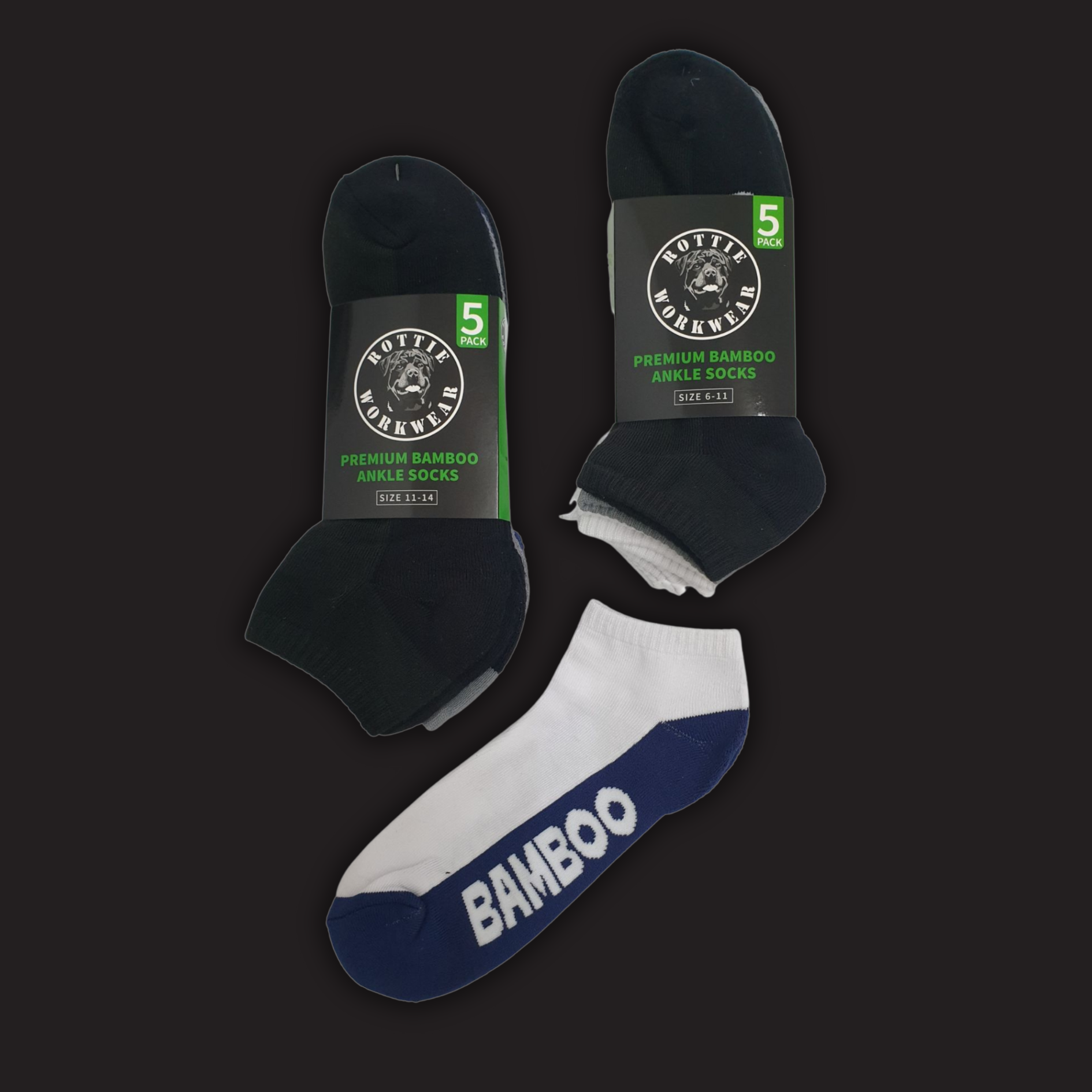 ROTTIE BAMBOO ANKLE WORK SOCKS - 5 PACK